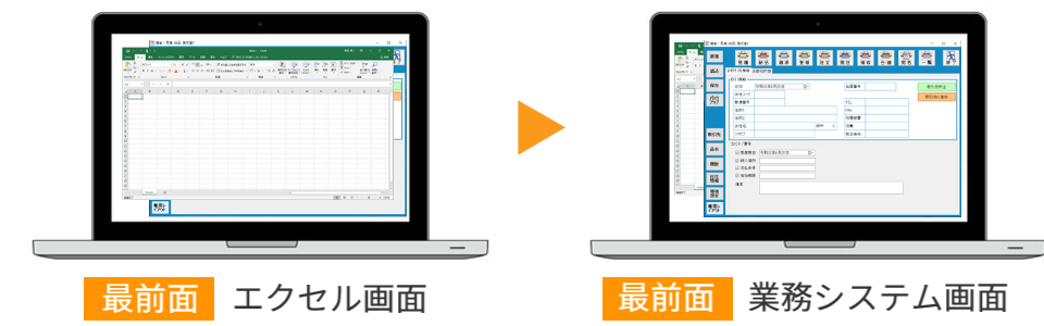 Excelを開く → Excelが開いてメモ帳が隠れる