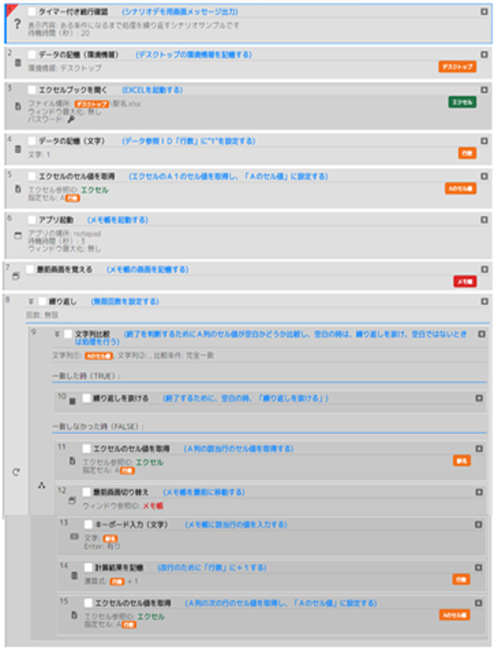*シナリオを実行する場合は、下記のエクセルファイルをデスクトップに登録してください。