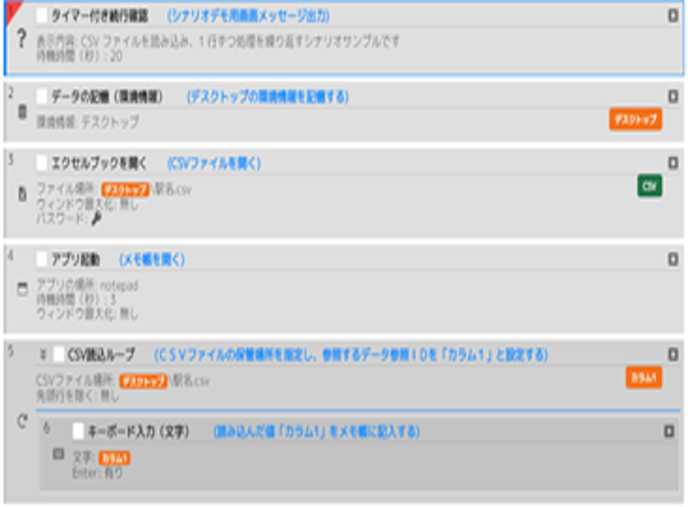 *シナリオを実行する場合は、下記のCSVファイルをデスクトップに登録してください。